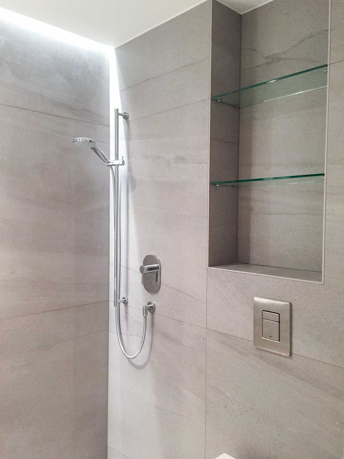 Bei Bad-Modernisierung oder Bad-Neubau erbringen wir alle Leistungen zuverlässig, professionell und auf handwerklich höchstem Niveau. Angefangen von Abrissarbeiten, Trockenbau-Systemlösungen, Verputzarbeiten, Fliesen- und Natursteinarbeiten, Spezialeinbauten wie Holz- und Glaskonzepte, Schranksysteme bis hin zum letzten Pinselstrich.